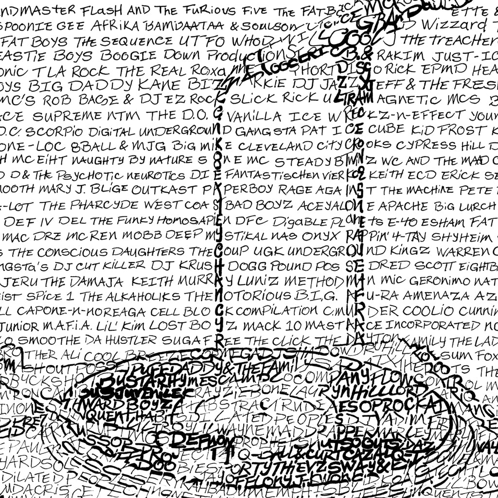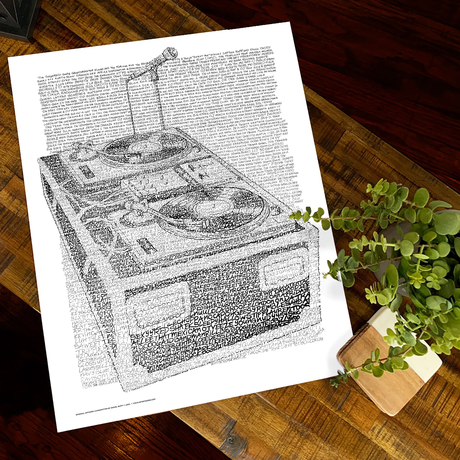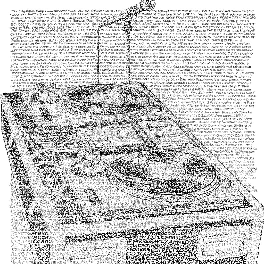 *This is the first word art to use AI to gather the data for the piece. We asked ChatGPT to name the top 50 rappers and hip hop artists for each year since 1973. I still handwrote all the words - not AI :)
